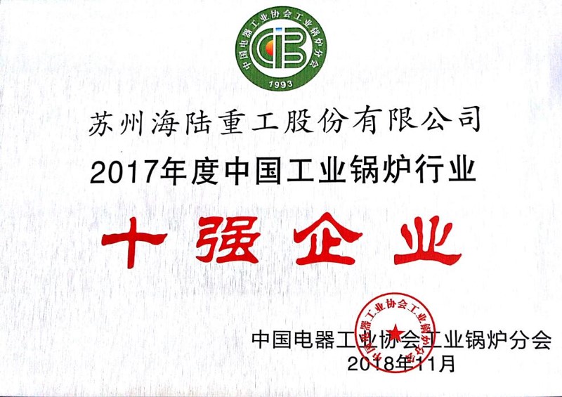 “2017年度中國工業(yè)鍋爐行業(yè)十強企業(yè)”
