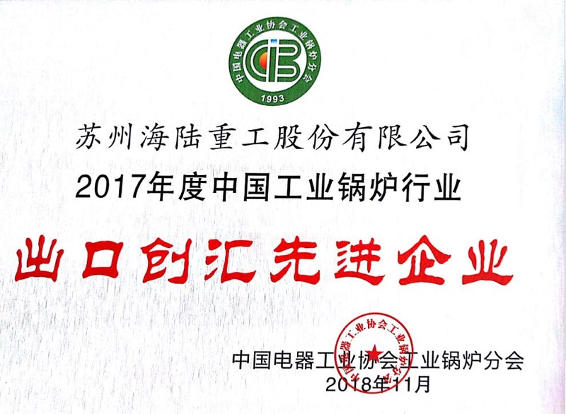 “2017年度中國工業(yè)鍋爐行業(yè)出口創(chuàng)匯先進企業(yè)”