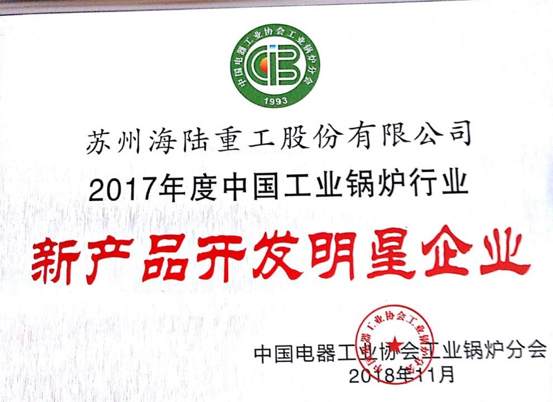 “2017年度中國工業(yè)鍋爐行業(yè)新產品開發(fā)明星企業(yè)"